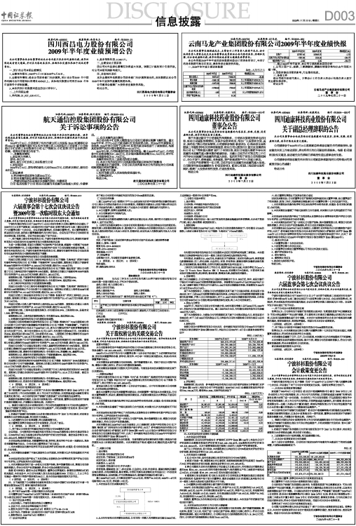 云南马龙产业集团股份有限公司2009年半年度业绩快报