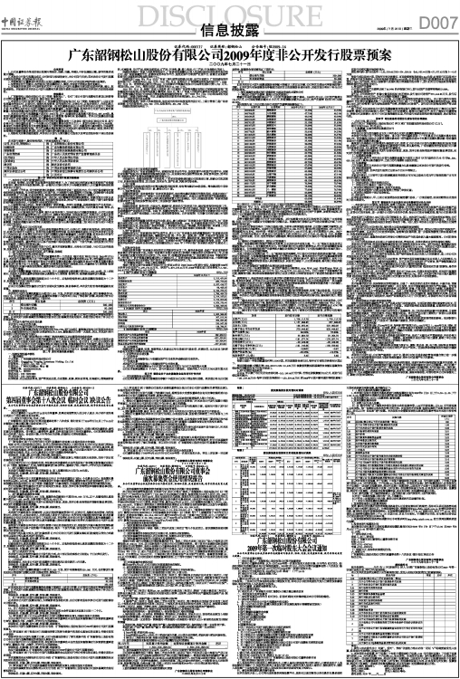 广东韶钢松山股份有限公司2009年度非公开发行股票预案
