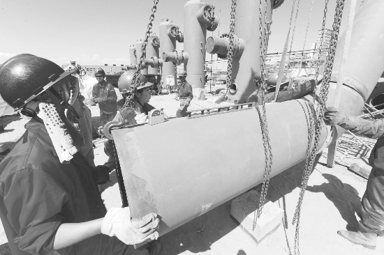 近日,西气东输二线霍尔果斯首站工程进度过半,两台30兆瓦的压缩机已安装到位,工程全面进入管线焊接和仪表调试、安装阶段。新华社图片