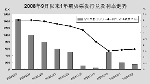 至于对债市的影响方面,分析人士表示,1年期央票利率连续两周出现上行,一方面透露出央行对货币政策开始着手调整的明显意图,另一方面大大提高了中短端收益率的定价中枢,收益率曲线势必再次做出调整。因此,在央票利率企稳之前,机构将难以积极出手拿券。事实上,重启1年期央票意味着货币政策的微调,极度宽松的资金面将逐步转变为适度宽松,预计在未来较长一段时期内,债市都将难以扭转当前的弱势。