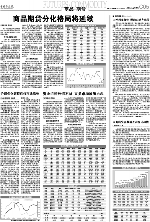 螺纹钢期货成交量继续遥遥领先,周一已经增至2703414手。主力0911合约以4,658元/吨低开并维持震荡,盘中一度跳水跌至4,556元/吨后企稳,午后价格略有回升,尾盘以1.88%的幅度收跌至4,642元/吨,比上一交易日结算价下跌89元/吨,成交量为2,447,234手,较7日增加217,784手,持仓量为545,680手,增加66,238手。