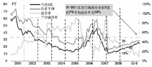 招商证券分析师张明芳发布报告指出,当前医药板块和全部A股2009年预测PE分别为29倍和25倍,PEG分别为0.53和1.1,板块相对估值溢价率仅19%,远低于历史平均50%溢价水平。上周医药板块明显强于大盘,医药板块上涨2.38%,而上证指数下跌4.44%。