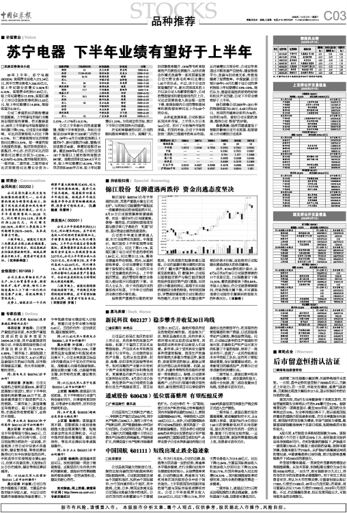 苏宁电器 下半年业绩有望好于上半年