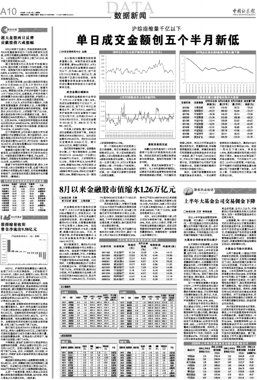 8月以来金融股市值缩水1.26万亿元