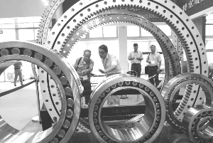 9月2日,展位工作人员介绍风力发电和轧钢用轴承产品。