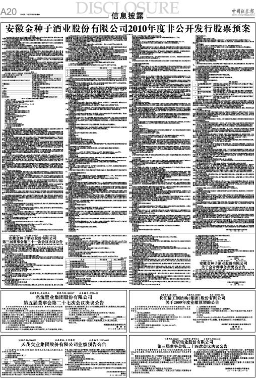 安徽金种子酒业股份有限公司2010年度非公开发行股票预案