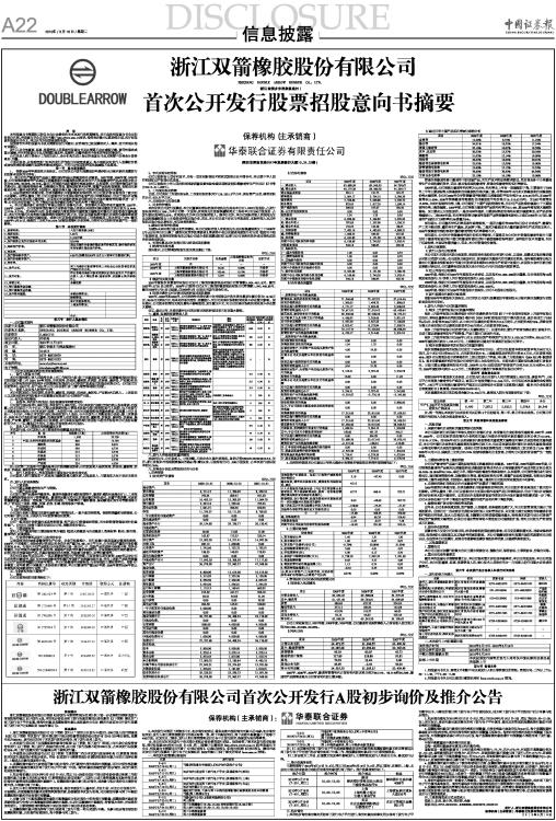 浙江双箭橡胶股份有限公司首次公开发行A股初步询价及推介公告