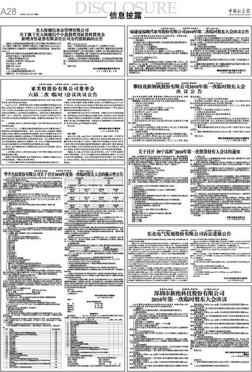 攀枝花新钢钒股份有限公司2010年第一次临时股东大会