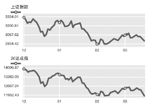 本表截至北京时间3月15日 22:30 股票市场 沪深300指数 上证综合指数 深证成份指数 香港恒生指数 恒生国企指数 道琼斯工业指数 最新 3183.18 2976.94 11903.33 21079.10 11971.49 10620.31 涨跌 -49.94 -36.47 -265.78 -130.64 -201.79 -4.38 期货市场 连豆-1009 沪铜1006 NYMEX原油 LME3个月铜 最新 3800 58380 79.640 7355.00 涨跌 -15 -1110 -1.600 -110.00 债券货币 上证国债指数 中证全债指数 欧元/美元 人民币/美元 最新 123.96 130.33 1.37000 6.8261 涨跌 +0.05 +0.09 -0.00620 +0.0001 全球市场 WORLD MARKETS