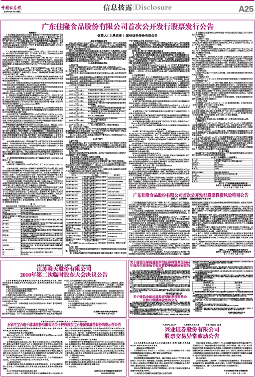 广东佳隆食品股份有限公司首次公开发行股票投资风险特别公告