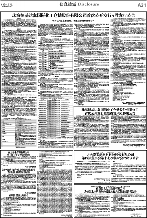珠海恒基达鑫国际化工仓储股份有限公司首次公开发行A股发行公告