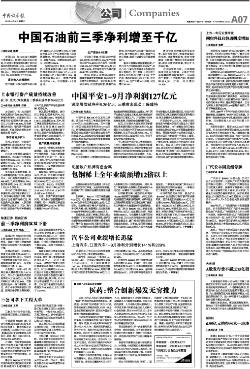 四家汽车上市公司公布的季报显示,汽车行业前三季业绩快速增长。