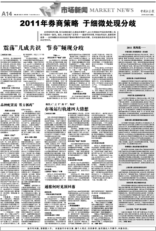 2011年券商策略 于细微处现分歧