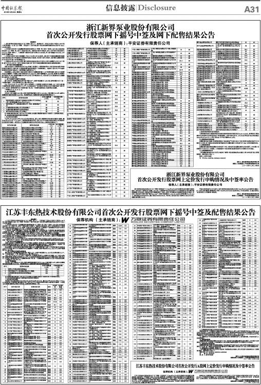 江苏丰东热技术股份有限公司首次公开发行股票网下摇号中签及配售结果公告