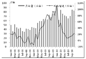 政策是汽车销量增速波动的关键因素,预计在2011年,实施两年的汽车购置税优惠政策不再实施,但《汽车下乡》及《汽车以旧换新》政策将保留,但两项政策或将做出相应的调整。在中国人均汽车保有量极低的国情下,汽车销量保持较快增长不足为奇。汽车市场发展的历史表明政策是影响销量增速变化的关键原因。2009年以来,国家陆续出台了多项政策以支持汽车产业发展,汽车销量增速喜人,2010年将超过1800万辆。其中1.6L以下轿车和交叉乘用车受益最多。