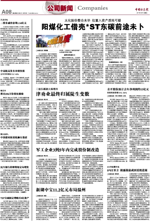 公司能见度:阳煤化工借壳*ST东碳前途未卜