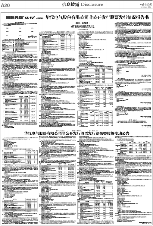 华仪电气股份有限公司非公开发行股票发行结果暨股份变动公告