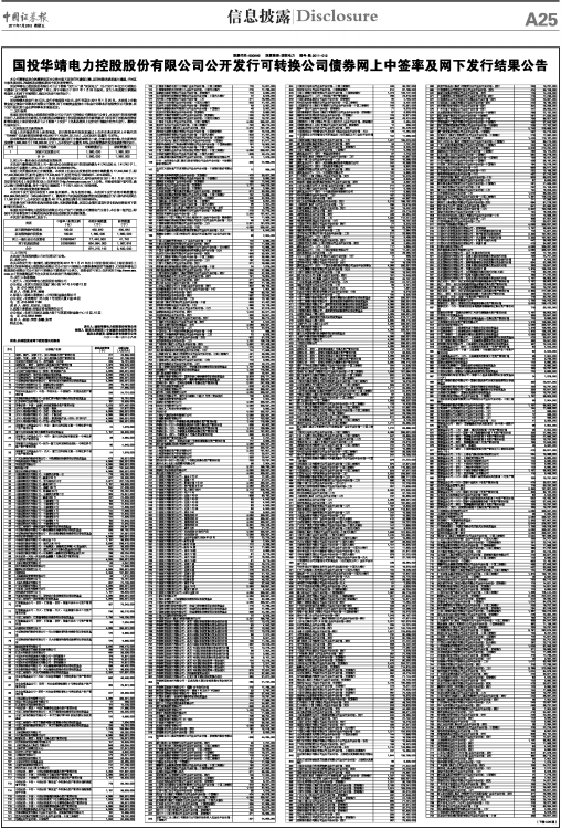 国投华靖电力控股股份有限公司公开发行可转换公司债券网上中签率及网下发行结果公告