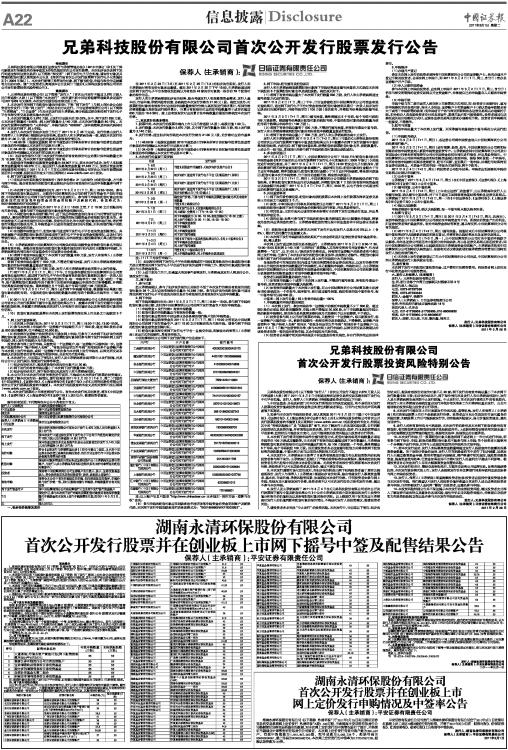 兄弟科技股份有限公司首次公开发行股票发行公告
