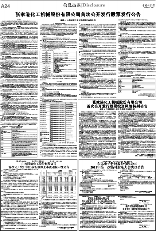 张家港化工机械股份有限公司首次公开发行股票发行公告