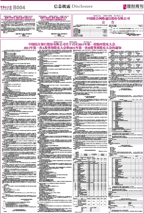 中国民生银行股份有限公司关于召开2011年第一次临时股东大会、