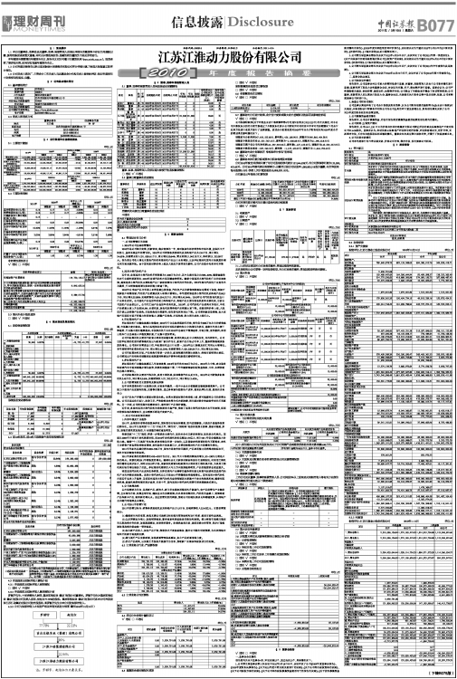 编制单位:江苏江淮动力股份有限公司 2010年度 单位:元