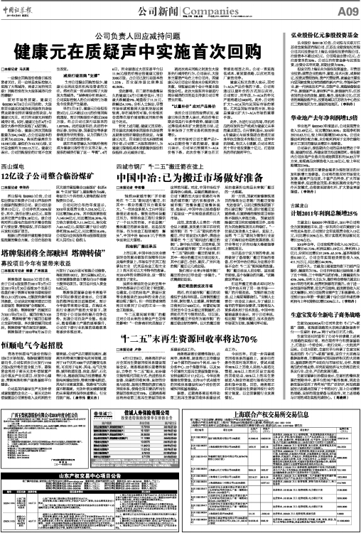 新兴铸管股份有限公司2011年第一季度业绩快报