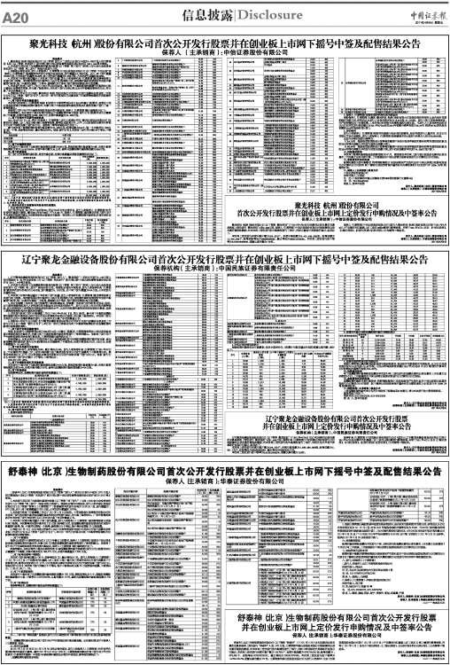 辽宁聚龙金融设备股份有限公司首次公开发行股票并在创业板上市网下摇号中签及配售结果公告