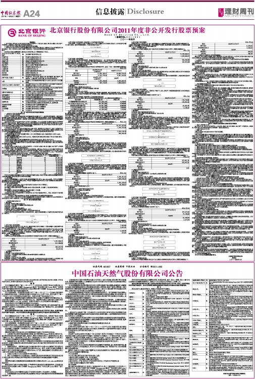 北京银行股份有限公司2011年度非公开发行股票预案