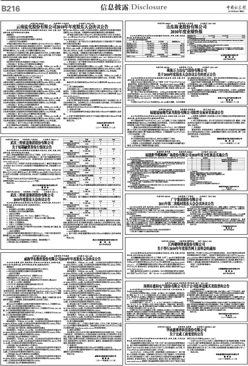 云南盐化股份有限公司2010年年度股东大会决议公告
