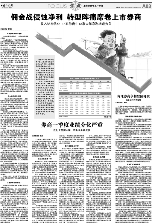 佣金战侵蚀净利 转型阵痛席卷上市券商