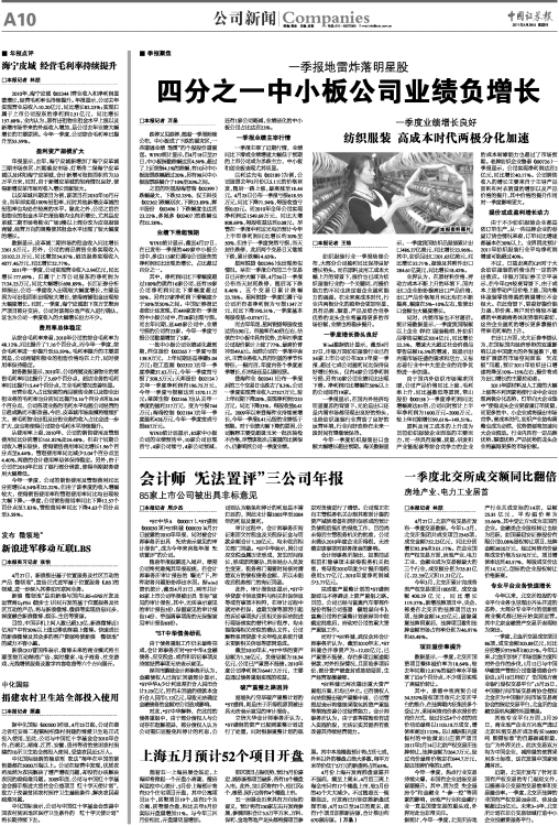 四分之一中小板公司业绩负增长