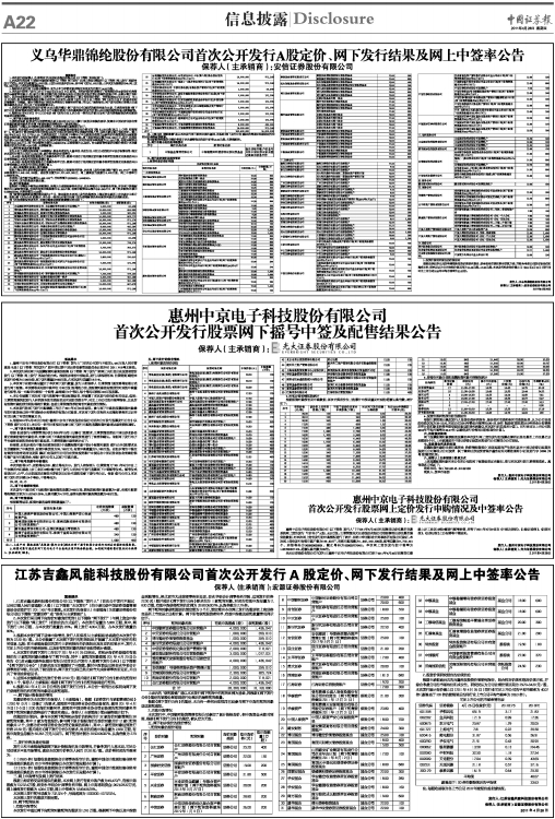 义乌华鼎锦纶股份有限公司首次公开发行A股定价、网下发行结果及网上中签率公告