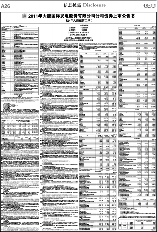 2011年大唐国际发电股份有限公司公司债券上市公告书