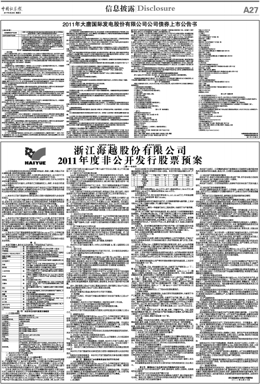2011年大唐国际发电股份有限公司公司债券上市公告书