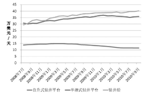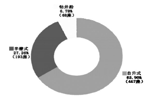 就钻井装备市场而言,2010年订单总数大幅增长。截至2010年,全球自升式钻井平台保有量占主要地位,达467座,占比65.96%;半潜式钻井平台193座,占比27.26%;钻井船48座,占比为6.78%。从钻井装备运营市场的利用率来看,2009年3月以来总体趋升,2010年下半年有所回落。目前整体利用率保持在73.4%左右。但三种主要装备走势各有不同,钻井船回落明显,自升式保持平稳,而半潜式钻井平台甚至稳中有升。
