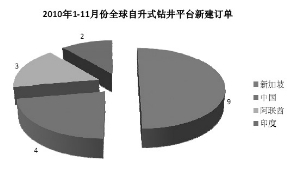 就生产装备市场来看,2010年浮式生产装备新建订单大幅增加,装备类型十分丰富,韩国、巴西获得其中大多数订单。FPSO新接订单大幅增加,FPSO改装市场仍占半数以上,新加坡在FPSO改装领域仍保持垄断地位。