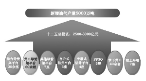 在发展新能源的背景下,海上风电场建设正进入高速发展期,需要大量的海上及潮间带风力发电装备、海上及潮间带风机安装平台(船)、海上风机运营维护船等装备,估计2011-2015年间的年均市场规模将达到110亿美元。目前海洋油气开发每年在装备方面的投资约为500-600亿美元,预计2011-2015年间将增至年均800亿美元。其中,海洋油气钻井平台年均约282亿美元,浮式生产平台约189亿美元,海洋工程船舶约126亿美元,其他装备(包括固定式生产平台、水下设施和设备、陆上终端以及新型装备等)约200亿美元。