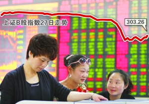 27日午后,沪深B股市场突现大幅下挫,其中上证B指盘中一度暴跌逾7%,收盘跌幅仍高达5.33%。B股暴跌引发的恐慌情绪对A股形成拖累,上证综指与深证成指走出“四连阴”。
