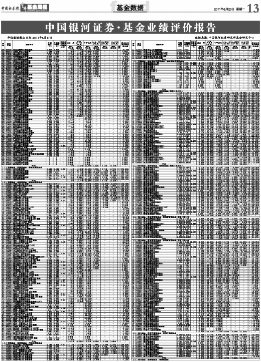净值数据截止日期:2011年6月17日数据来源:中国银河证券研究所基金研究中心