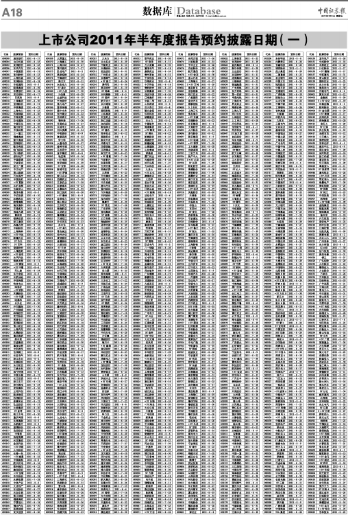 上市公司2011年半年度报告预约披露日期(一)