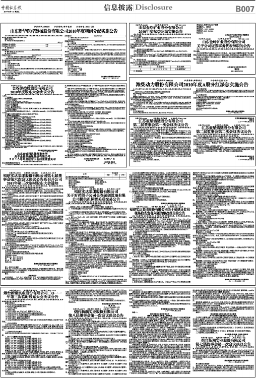 山东新华医疗器械股份有限公司2010年度利润分配实施公告