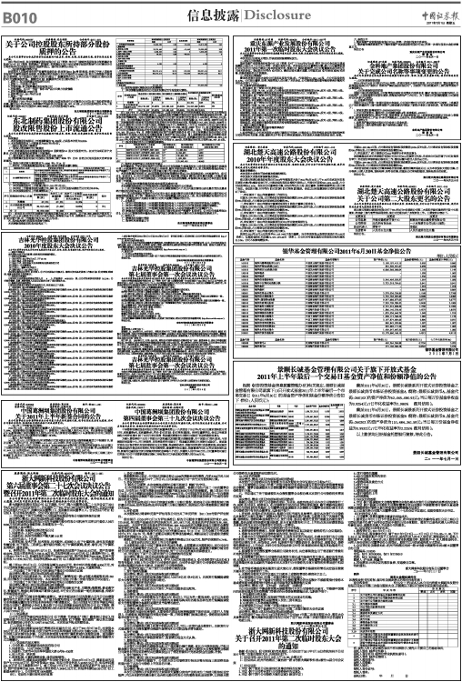 2011年上半年最后一个交易日基金资产净值和份额净值的公告