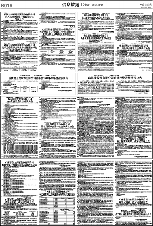 重庆渝开发股份有限公司董事会2011年半年度业绩预告