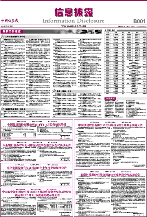第B001版:信息披露