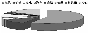 通过对国内钢材在各行业的应用数据进行统计分析,不难发现钢材主要应用在建筑、机械和家电三个行业,而且这三个行业的用量占到了总比例的77.3%,其中尤以建筑行业用量最大,达到了总比例的58%,可见建筑行业对钢材用量的比例占到各行业总用量的一半以上,而建筑行业的主要应用在房地产的开发。因此国内房地产投资和开发的力度将直接决定钢材的总体需求水平。