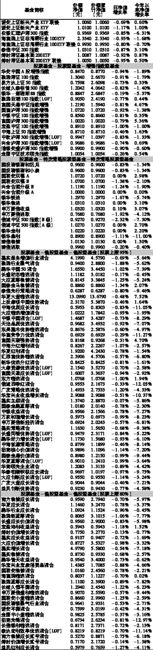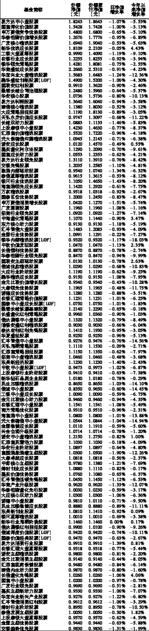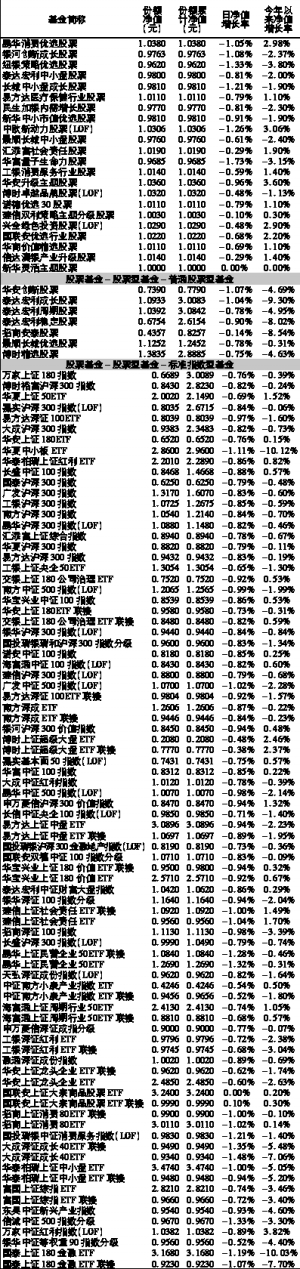 沪深上市基金行情