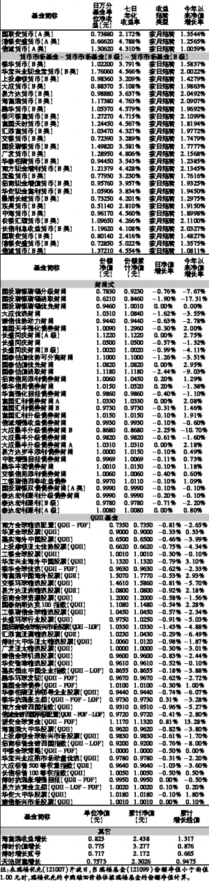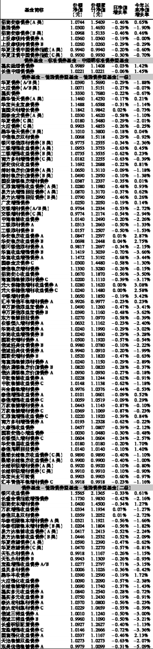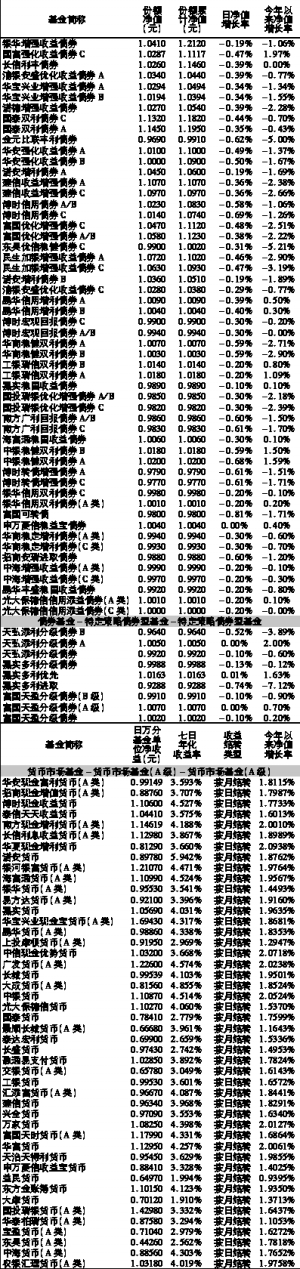 基金净值日报表