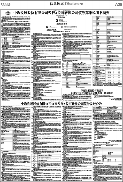 中海发展股份有限公司(以下简称“发行人”或“中海发展”)公开发行人民币39.5亿元A股可转换公司债券已获得中国证券监督管理委员会证监许可[2011]1152号文核准。本次公开发行的可转换公司债券将全额向发行人原A股股东优先配售,优先配售后余额部分(即原A股股东放弃优先配售部分)采用网下对机构投资者配售和通过上海证券交易所交易系统网上定价发行相结合的方式进行。
