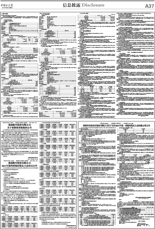 证券代码:600221 900945 股票简称:海南航空 海航B股 编号:临2011-030